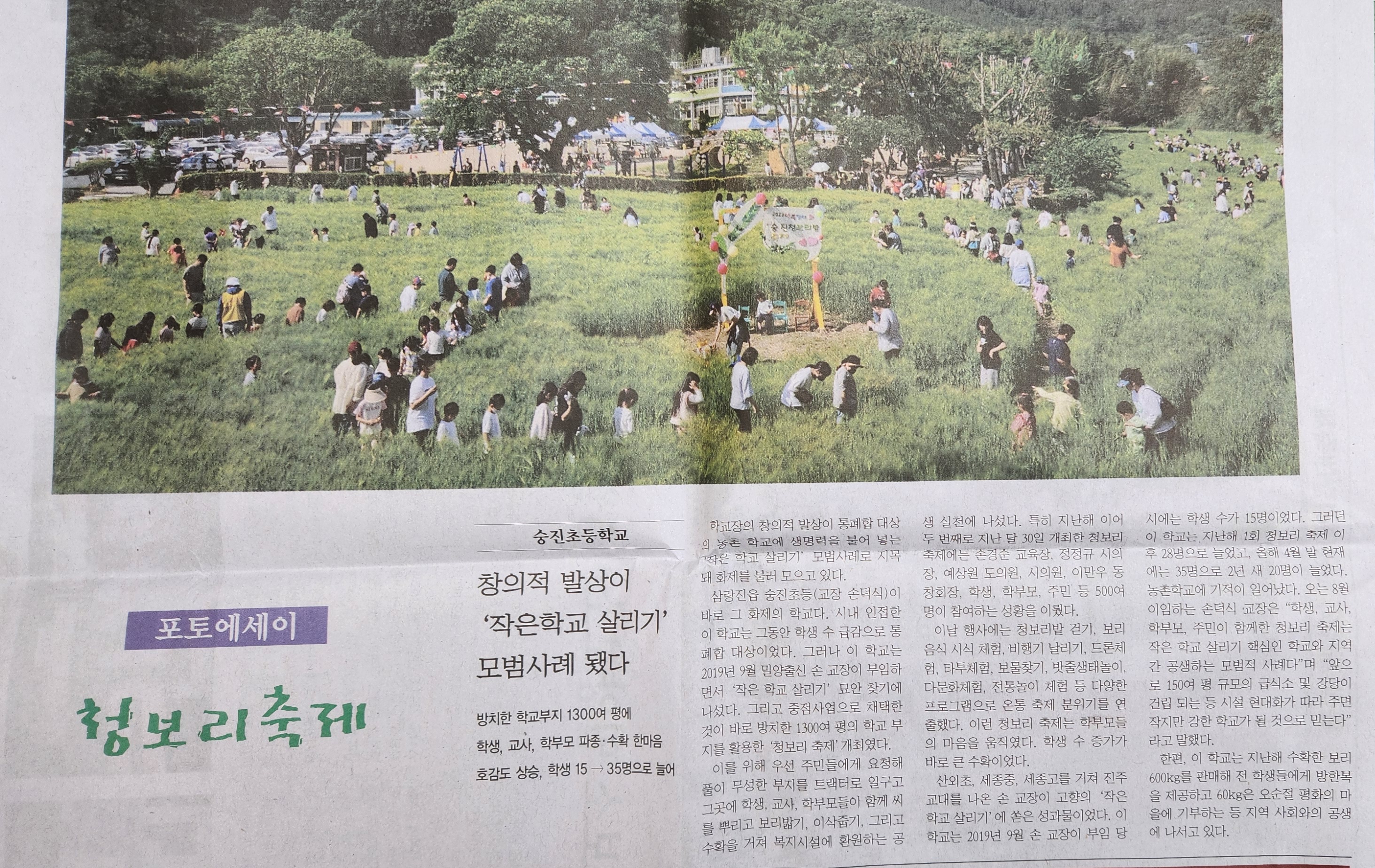밀양 숭진초,청보리밭 축제(밀양시민신문, 2023.05.15. 언론보도자료)