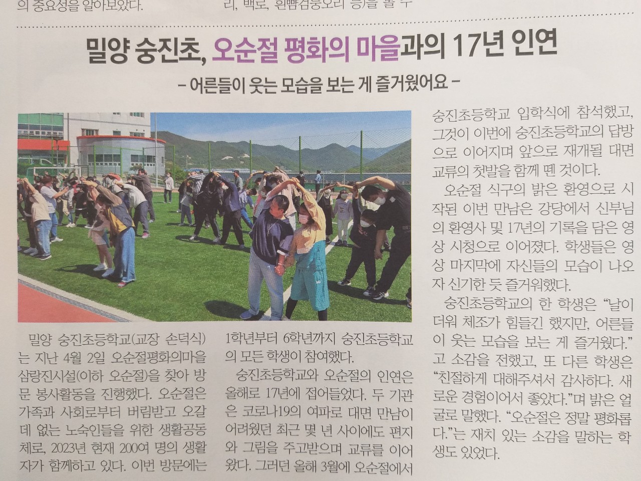 오순절 평화의 마을 봉사활동(경남교육삼락 85호 4면)언론보도