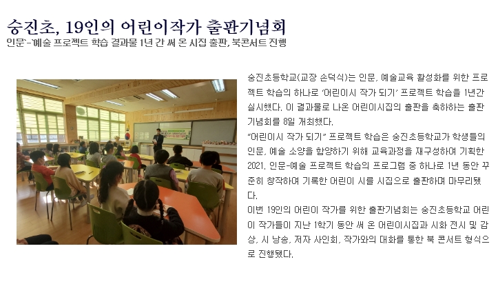 어린이시작가되기 출판기념회 개최(밀양시민신문, 12.17) 언론보도 자료입니다.